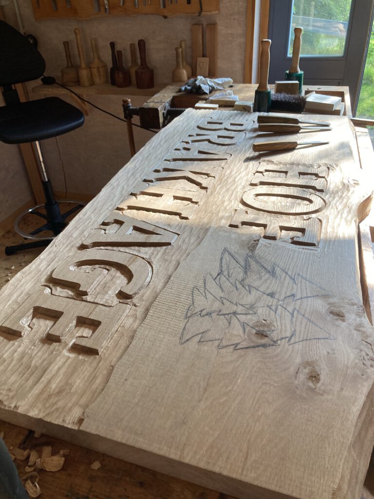 Dazu gehören Arbeiten für Tischlereien, Zimmereien, Restaurierungswerkstätten, Kirchengemeinden, Kommunen, Vereine, Planer:innen und andere Auftraggeber:innen, die besondere Holzarbeiten umsetzen oder ergänzen möchten. Ob Ornament, Inschrift, Hauszeichen, Bauteilergänzung oder Einzelstück nach Vorlage: Ich fertige sorgfältig, materialgerecht und mit Blick auf die gestalterische und handwerkliche Qualität.